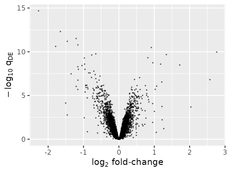 labs(x = expression(log[2]*' fold-change'), y = expression(-log[10]*' '*q[DE]))