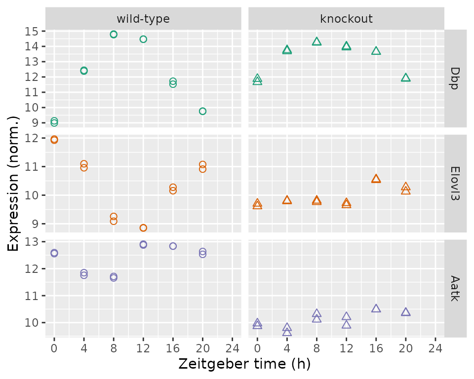 labs(x = 'Zeitgeber time (h)', y = 'Expression (norm.)') +